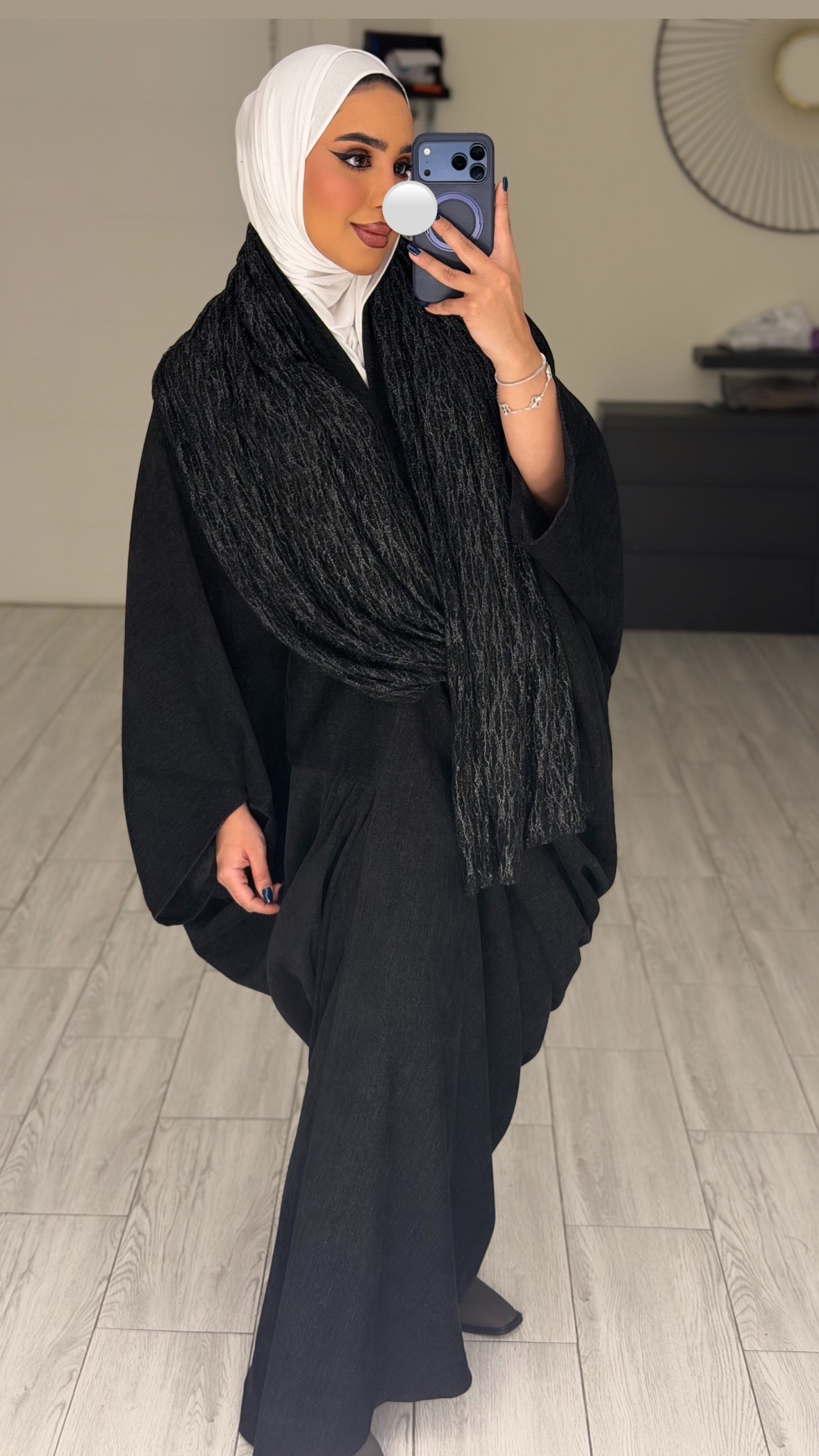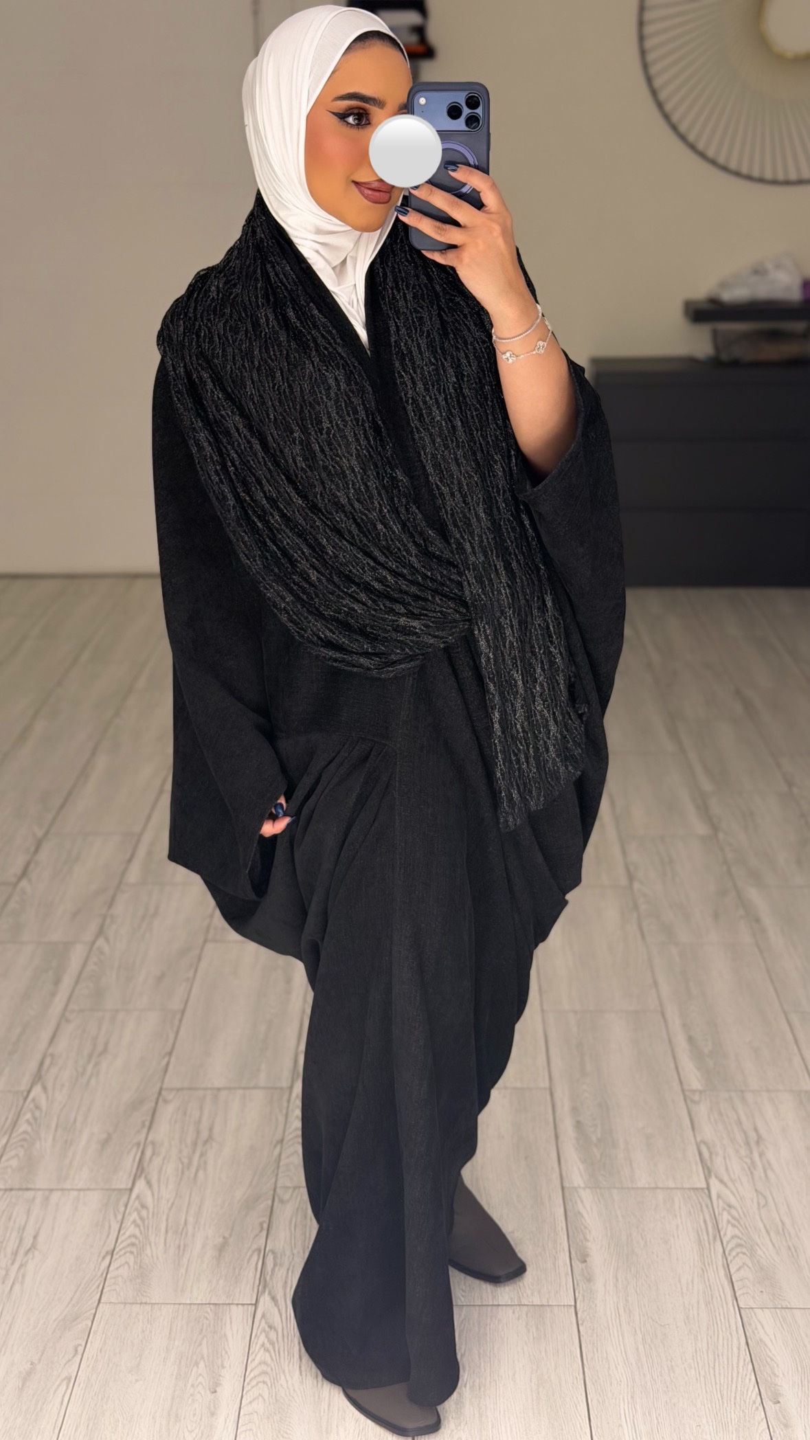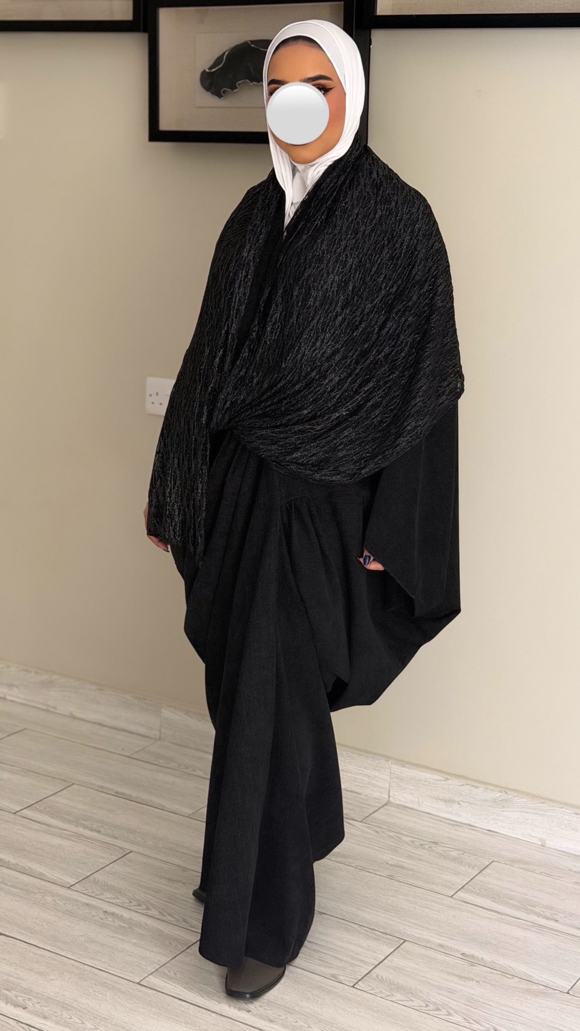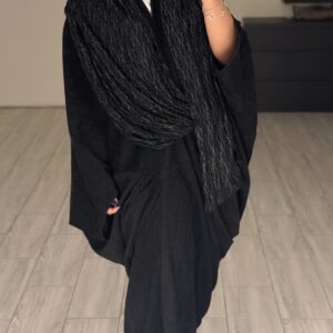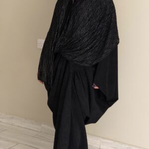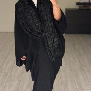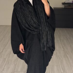 دراعه فري سايز مع شال دانتيل – اسود