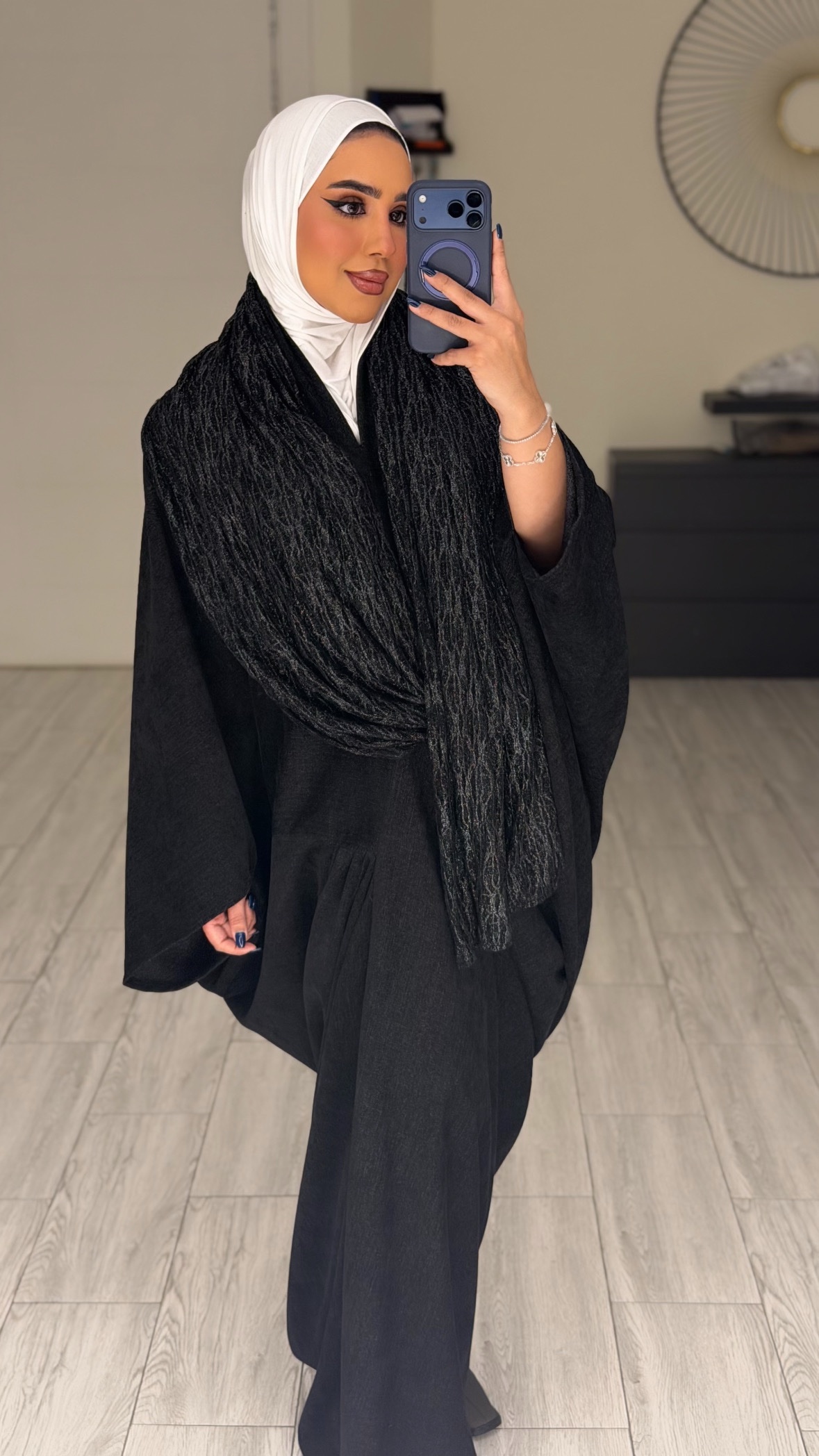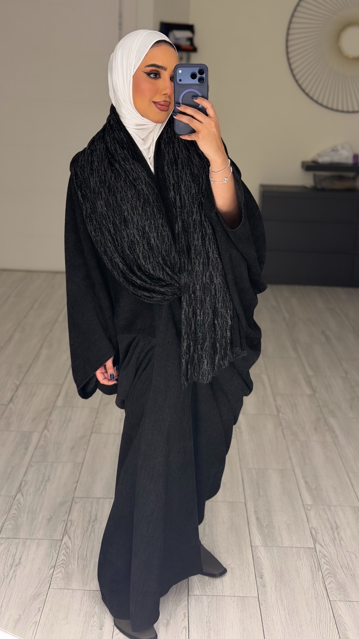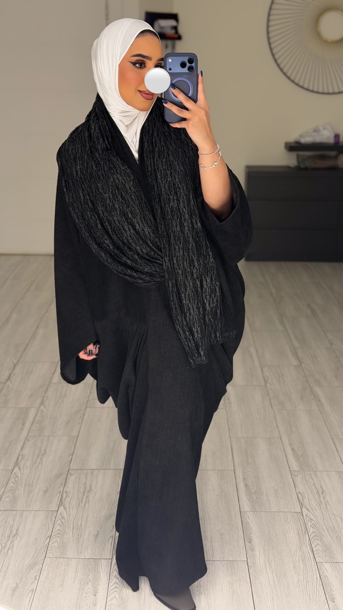 دراعه فري سايز مع شال دانتيل – اسود
