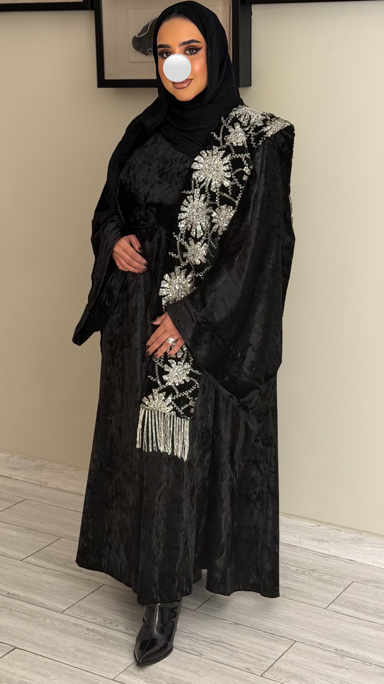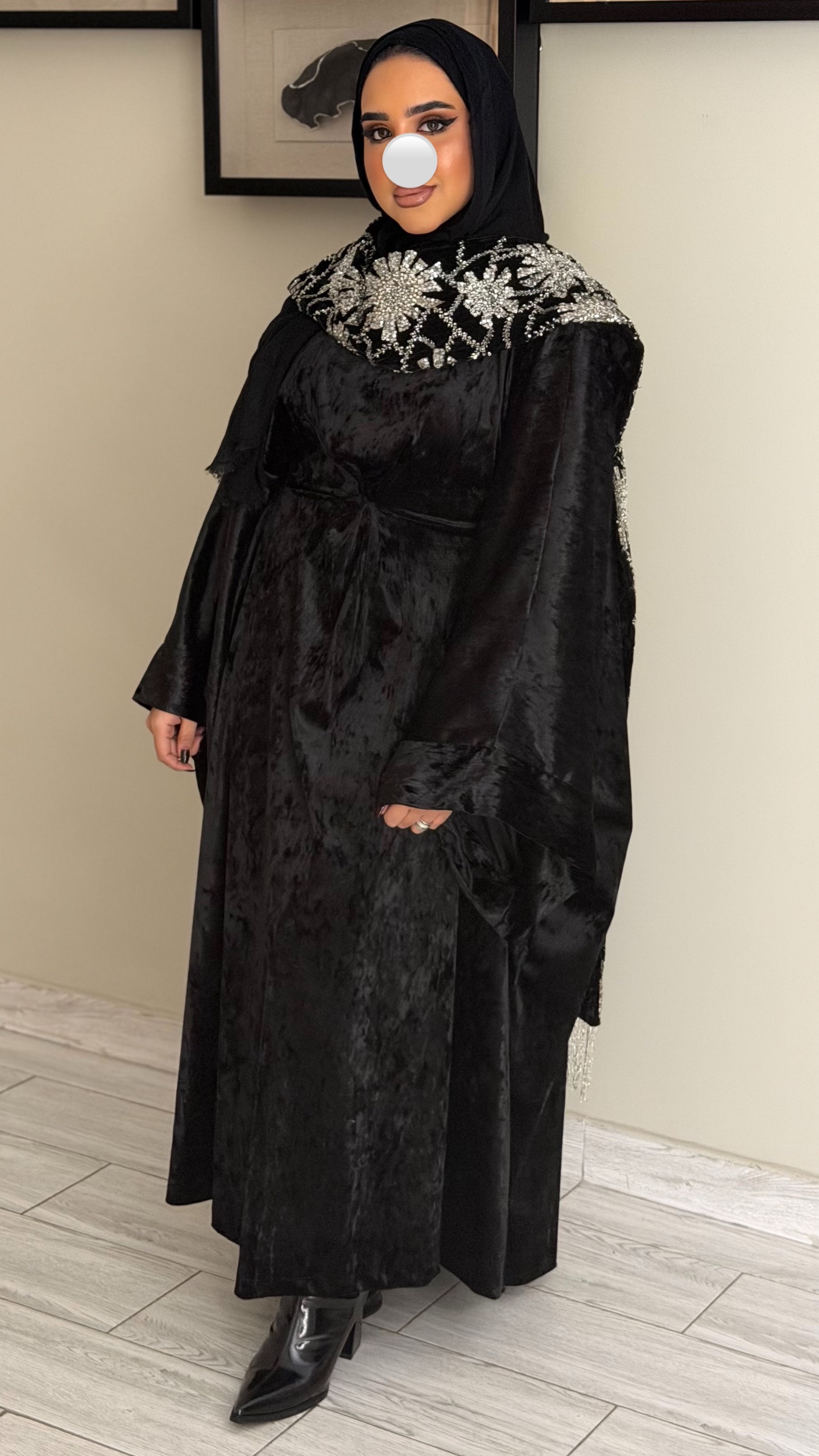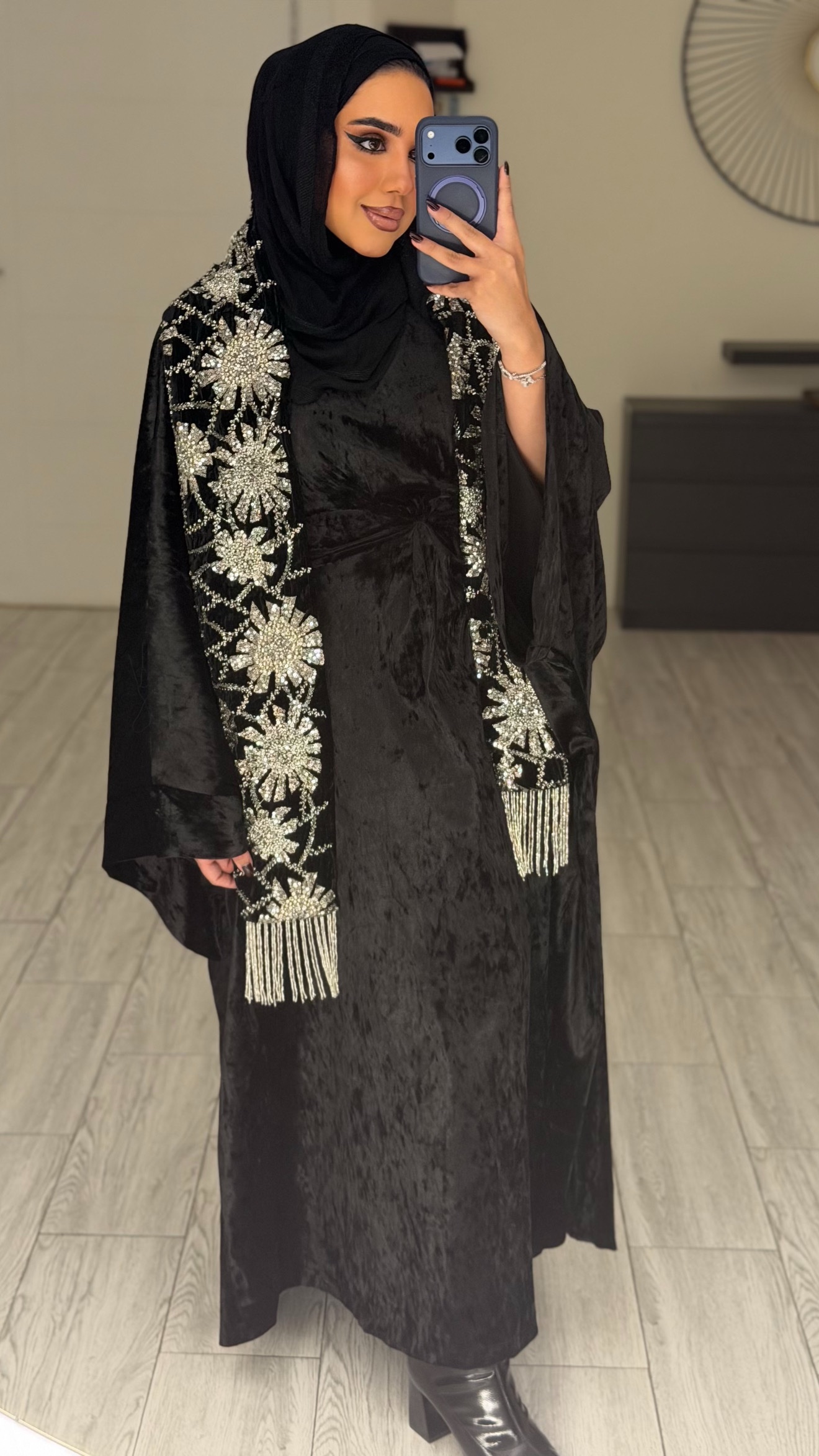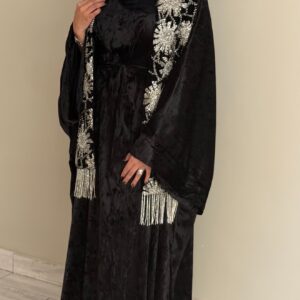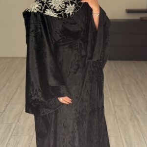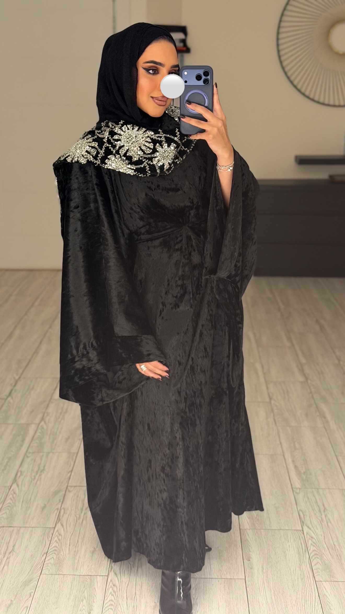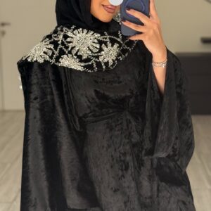 دراعه فري سايز مع سكارف مشكوك-اسود