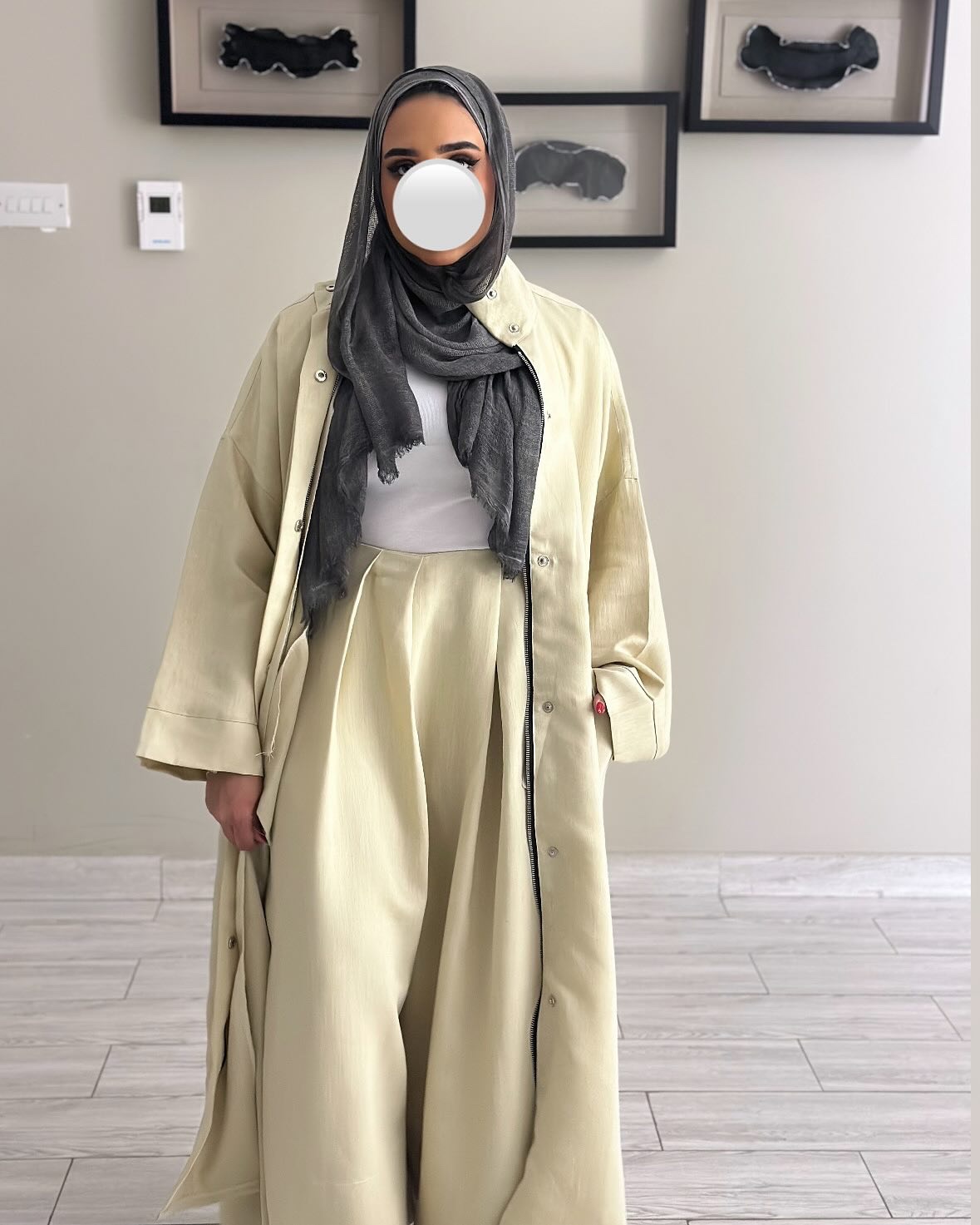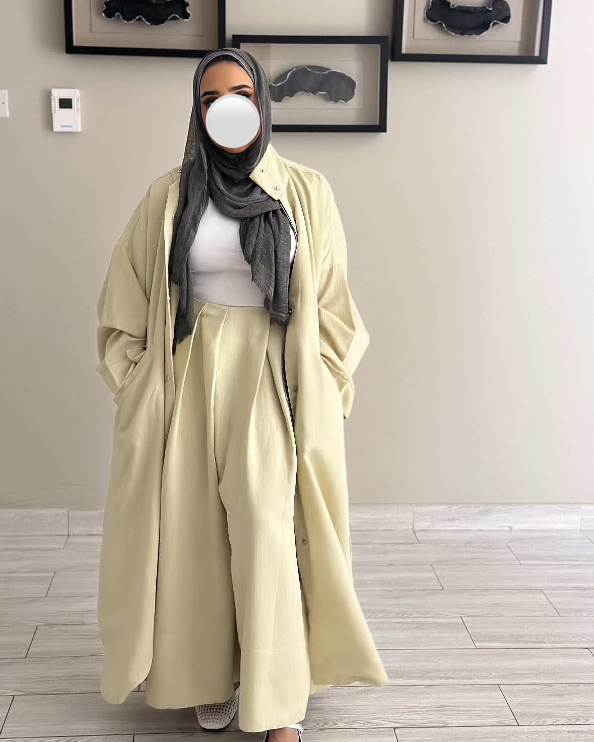 ترنش كوت لينن + بنطلون واسع