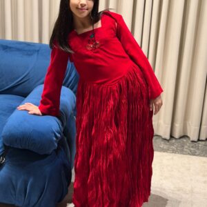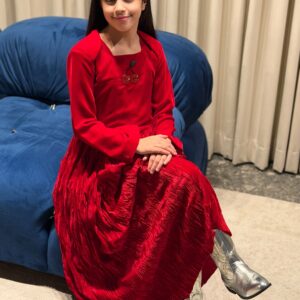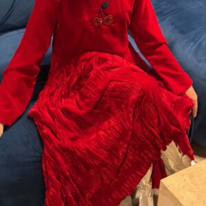 دراعه كلوش مخمل معفسXساده مع جاكيت قصير وشك يدوي cherry