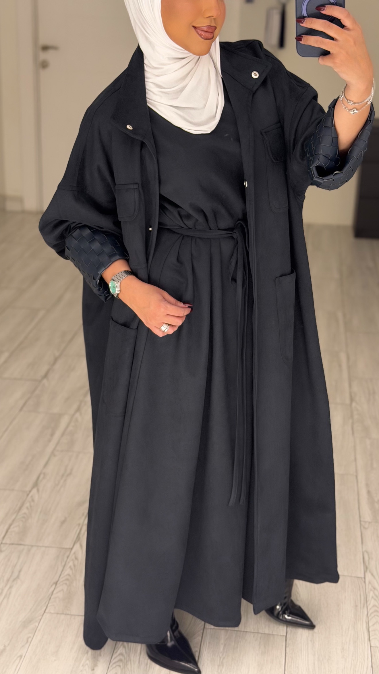 قطعه تنفع لرمضان والشتا عباره عن جاكيت ونفنوف شمواه خفيف مع جلد هاند ميد عالاكمام