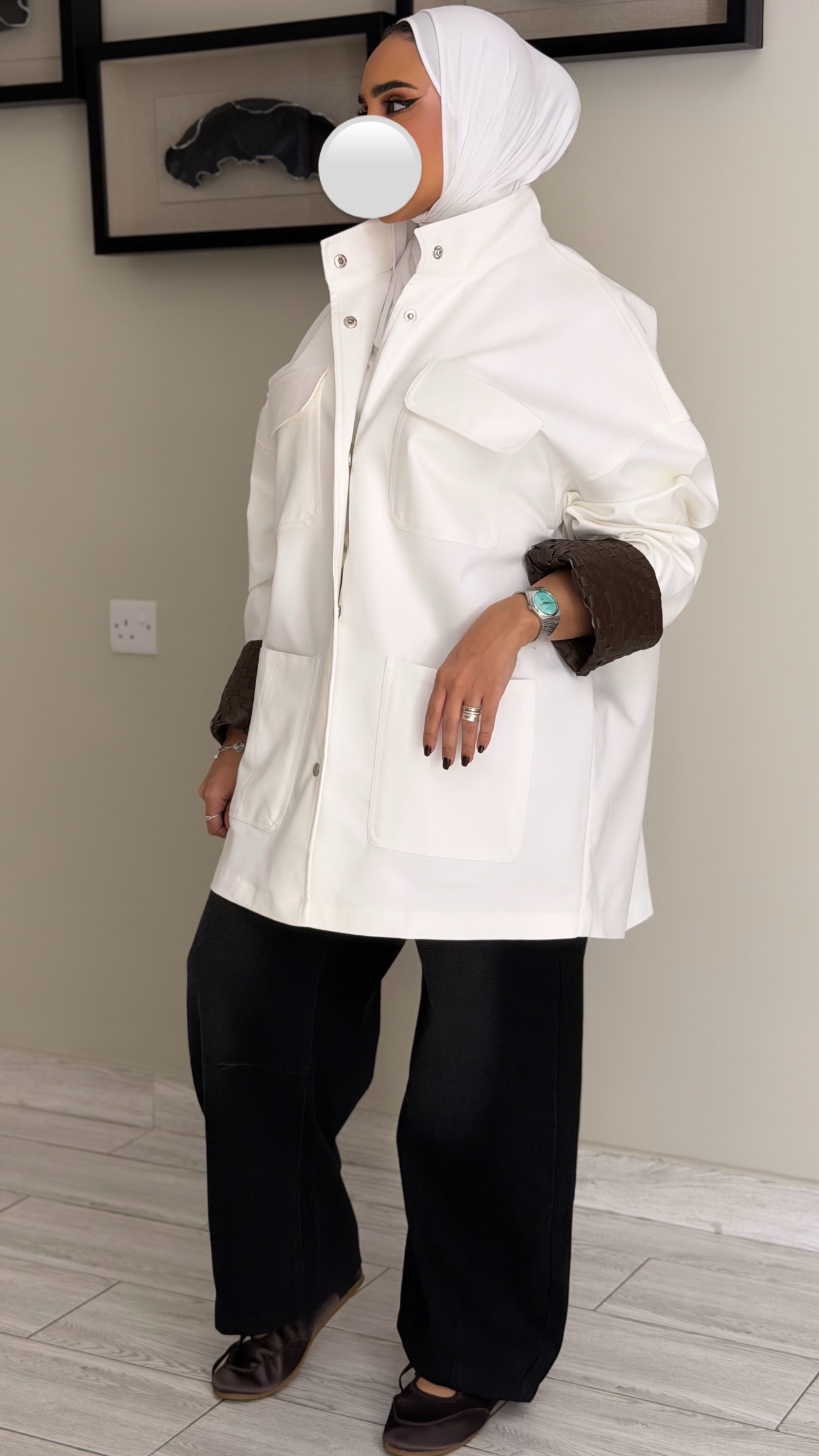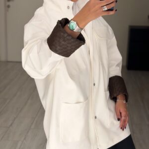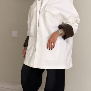 White jacket- hand made leather sleeve